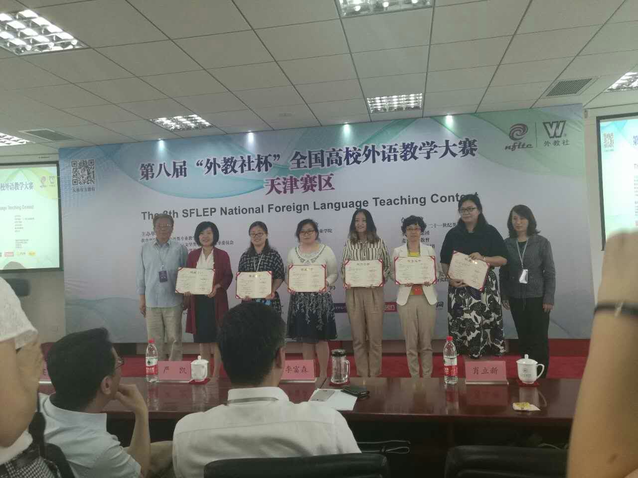 基础教学部孙洪英老师在2017年天津市高等职业院校青年教师外语教学大赛中,在系部大力支持下,经过个人精心准备,成功通过了授课比赛的初赛和复赛,并于2017年6月3日参加了在天津商务职业学院举行的第八届“外教社杯”全国高校外语教学大赛(职业院校组)天津赛区的决赛。比赛现场包括10分钟的说课环节和5分钟的回答评委提问环节,经过激烈角逐和良好的现场发挥,最终获得了二等奖的好成绩。
